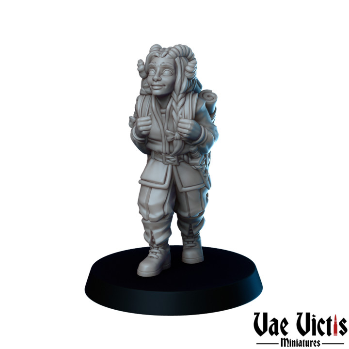 La petite tieffeline ajuste son sac et court rattraper le groupe. Elle se dirige vers la cartographe, qui consulte sa carte. — Hé, hé, c’est loin ? Pourriez-vous me montrer sur la carte s’il y a quelque chose d’intéressant à voir ? Sans attendre de réponse, elle court vers le rôdeur. — Pourriez-vous m’apprendre à tirer à l’arc ? Mon frère n’a jamais voulu, il disait que j’étais trop jeune ! Et vous ? — Hmm, pourquoi pas ! On verra bien une fois sur place ! Elle pousse un « youpi ! » d’enthousiasme et sprinte pour rattraper l’orque qui ouvre la marche. — Pourquoi es-tu devant ? Elle aperçoit l’épée longue à son côté. — Waouh ! Tu es la plus forte ? Je suis sûre que tu as déjà combattu des dragons ! Je veux te ressembler quand je serai grand(e) !