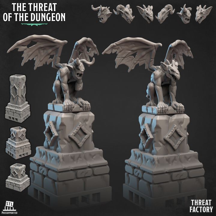 – Statues de gargouilles inanimées (2 corps) – 6 têtes de gargouilles – 3 options de piliers